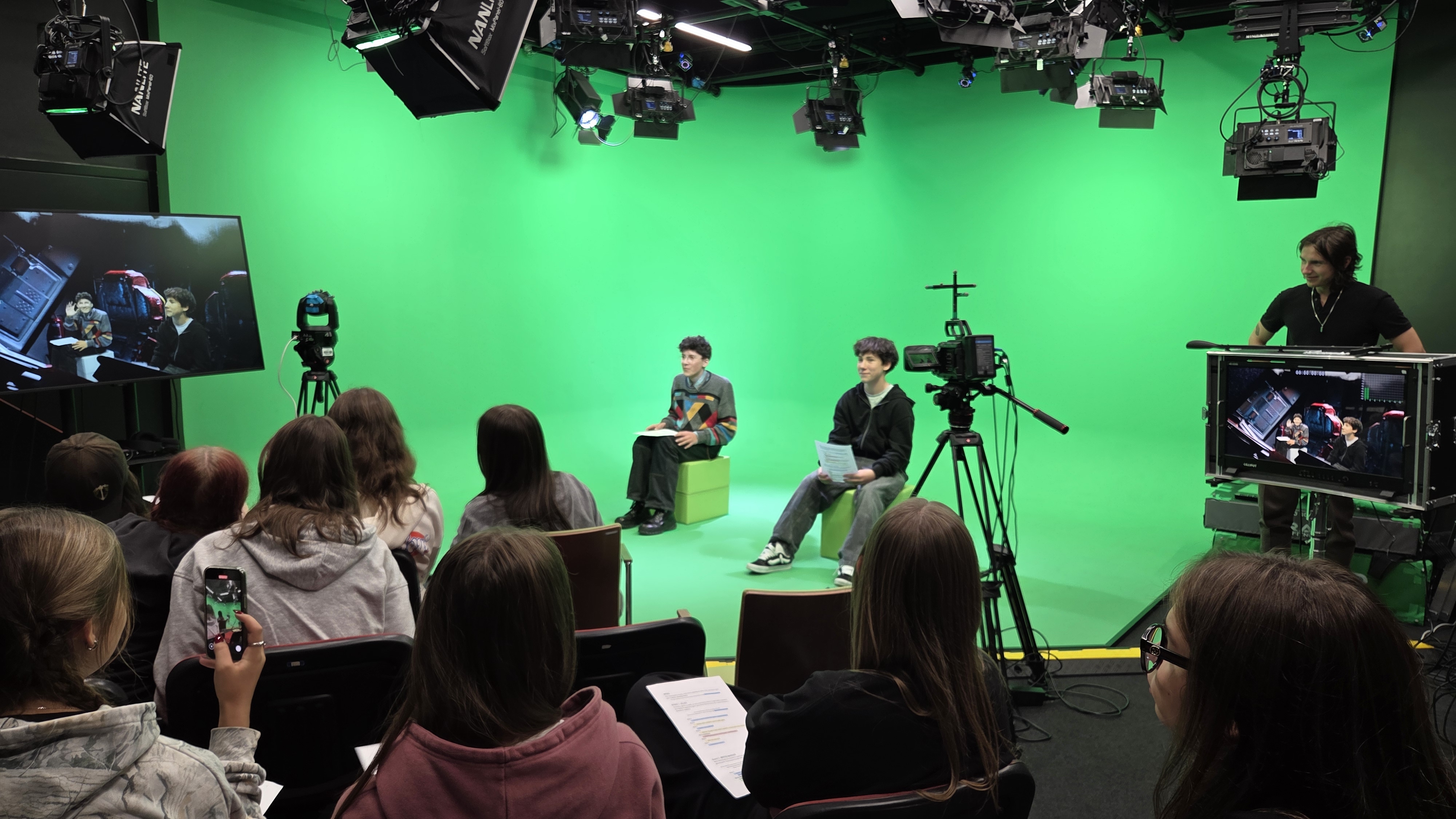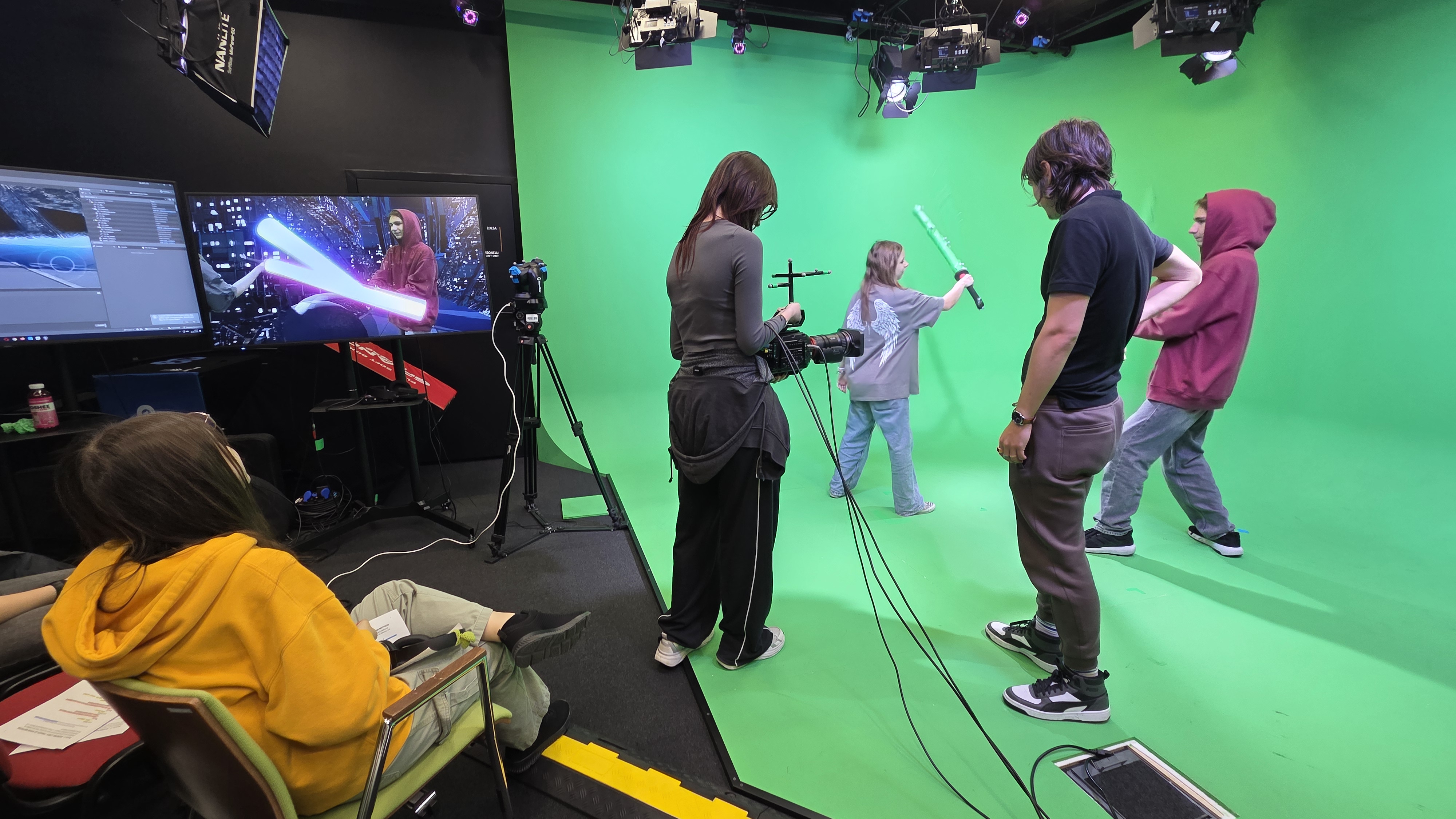 Podobało nam się na warsztatach w Narodowym Centrum Kultury Filmowej: w pracowni plastycznej tworzyliśmy animacje i charakteryzacje, w studiu dźwiękowym nagrywaliśmy dialogi do sceny z „Noża w wodzie”, a w sali z greenscreenem walczyliśmy na miecze świetlne ze „Star Wars”.